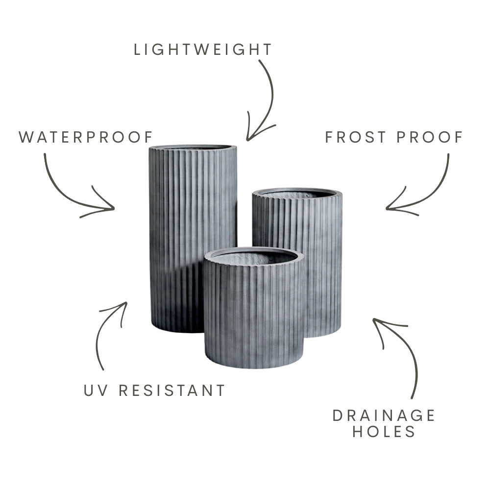 Crafted from our signature poly-resin blend, the Willow Range™ is designed for those who seek both form and function. These pots are lightweight yet incredibly durable, making them ideal for balconies, courtyards, and rooftops. Engineered for the harsh Australian climate, they are UV resistant, waterproof, and built to withstand the elements.