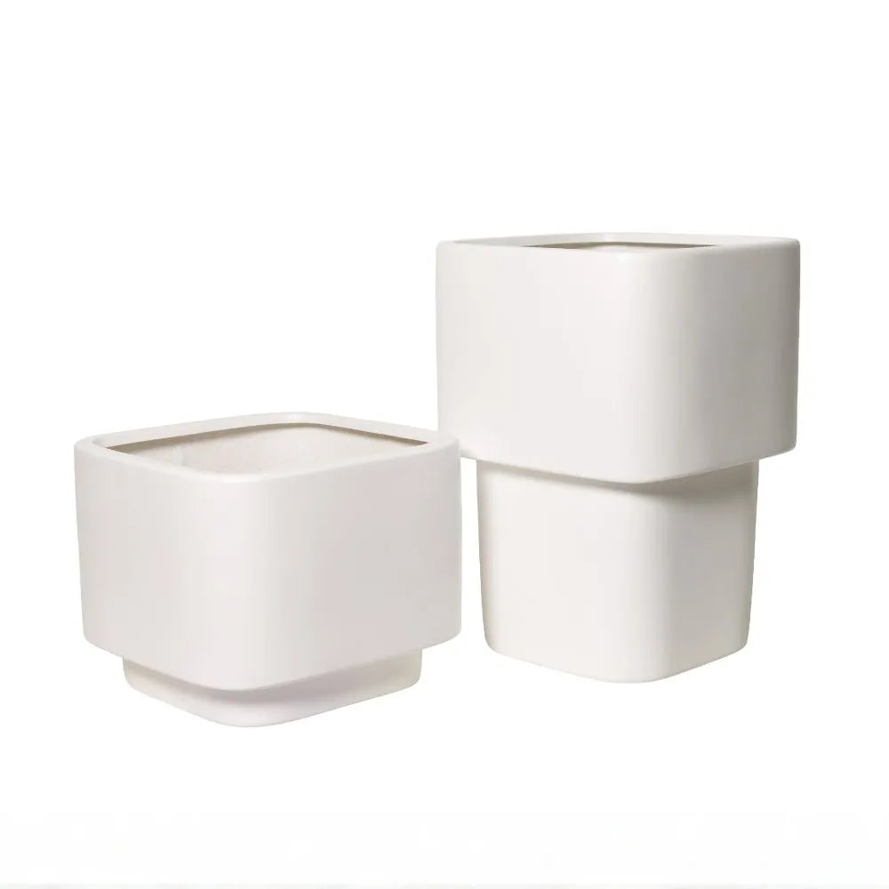 The Stacked Cube is what happens when you take a classic cube silhouette and give it a little more to say. A raised stepped base lifts the form off the ground, creating a subtle shadow line that adds depth without noise. Soft-radius corners keep it feeling warm rather than cold